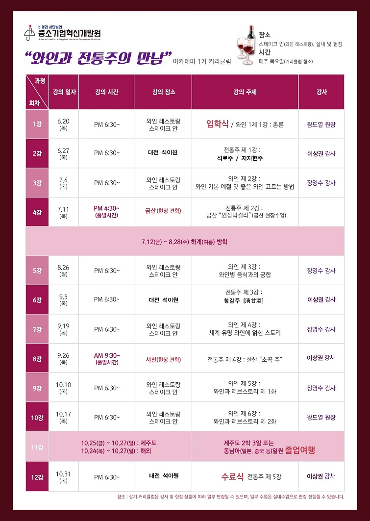 * 상기 강의 일정 및 행사 일정은 강사및 중기원의 상황에 따라 일부 변경될 수 있습니다.